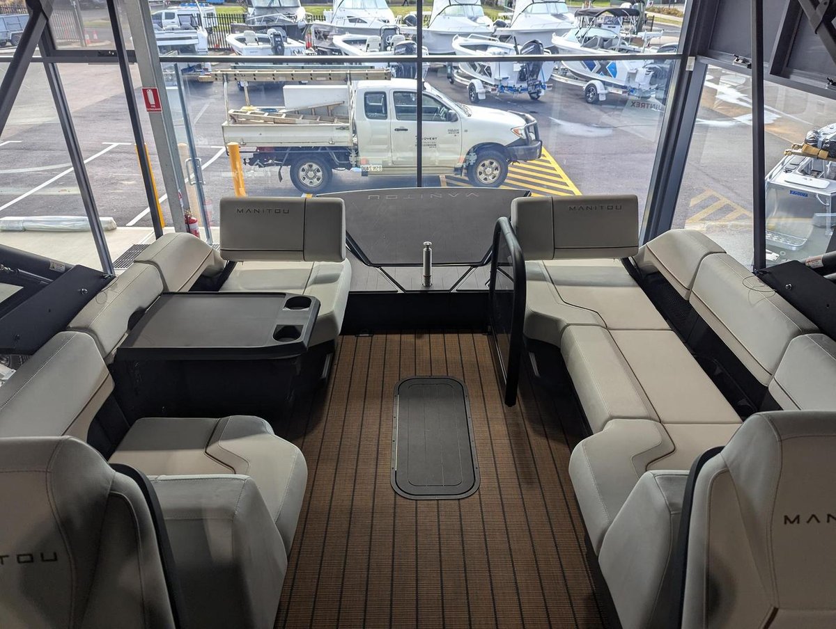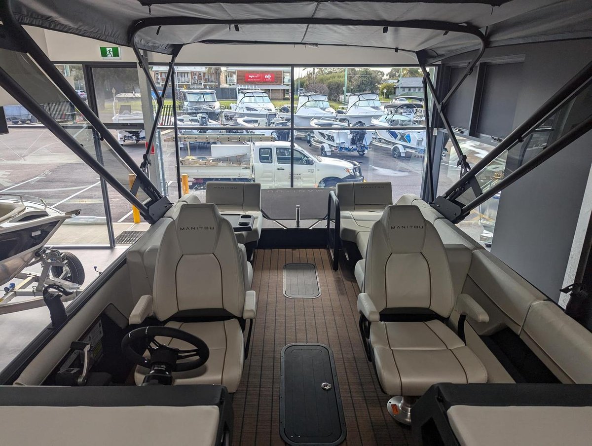 Offering the incredible new Rotax Outboard technology to give you more boat for your buck the Manitou has almost an extra meter of usable rear deck than competitors pontoons, and no engine to climb over.